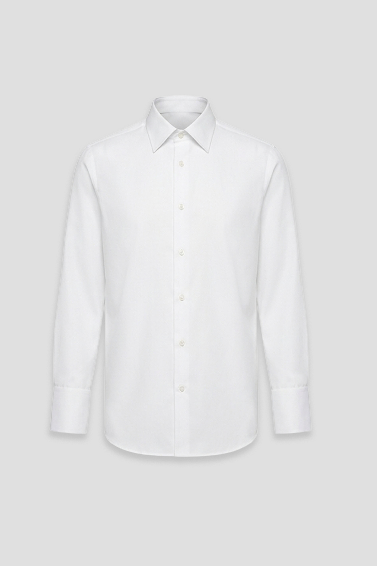 Camisa unisex en tela de efecto seda. Blanco. Corte relaxed con puños anchos. Piezas finales.