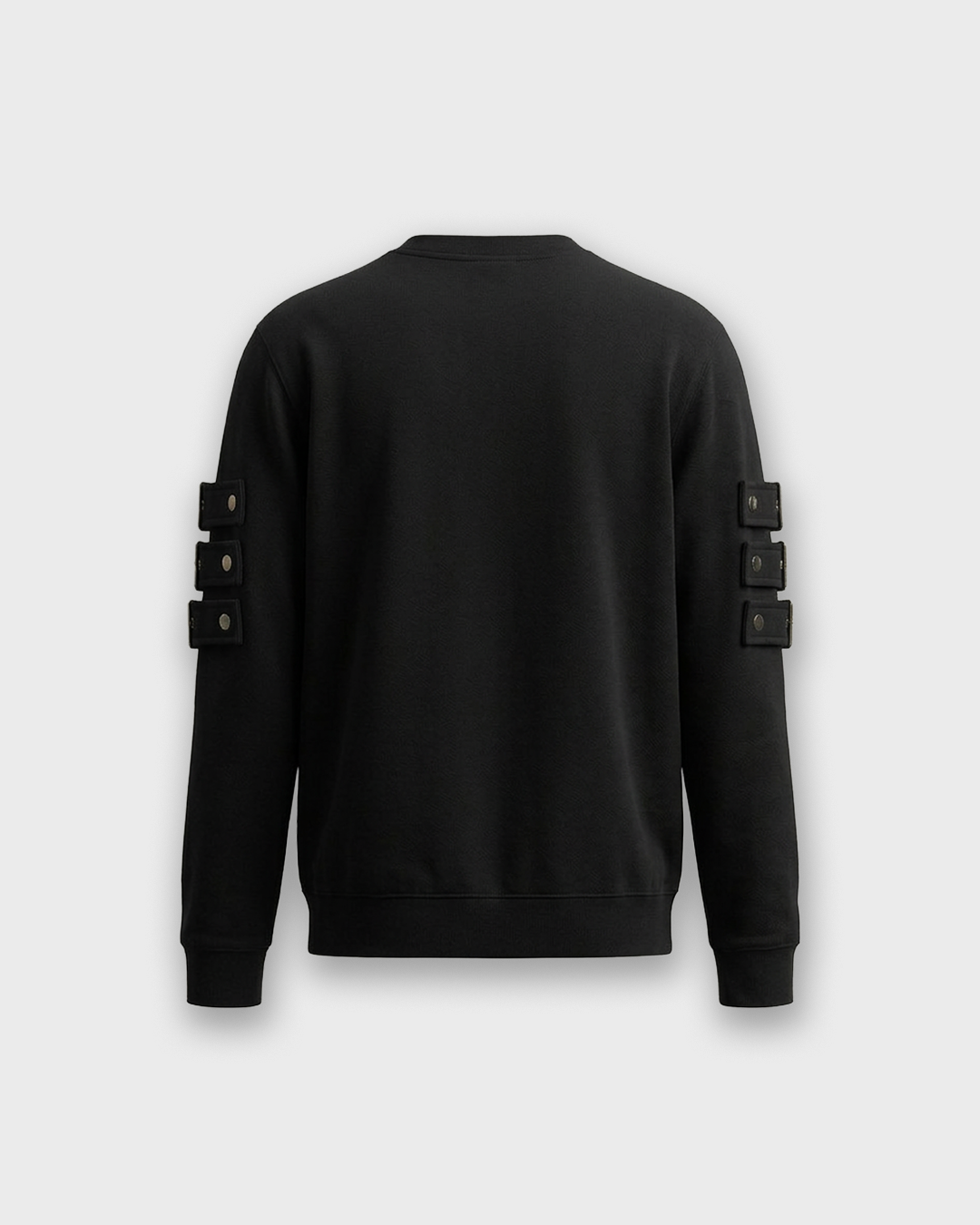 Sudadera negra estructurada unisex negra. Triple banner ALTPARD en cada manga, fijado con botones de acero inoxidable. Producción limitada, Colombia.